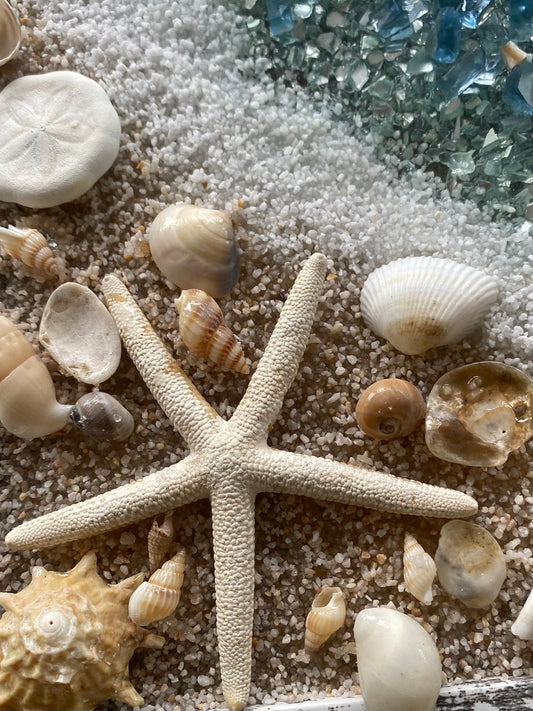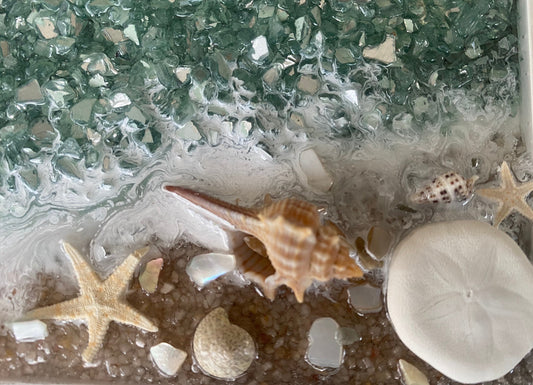 BEACH SCENE with STARFISH crushed glass Framed Art