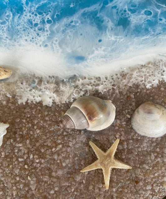 BEACHY Ocean Waves Wall Art with shells 8" round