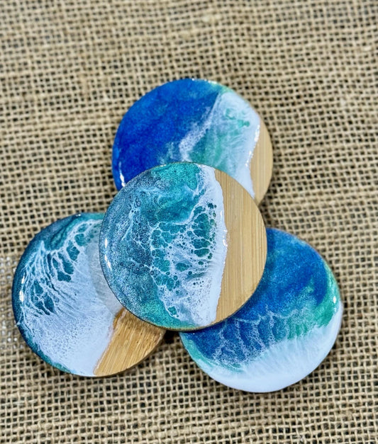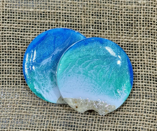 Car Coasters in Ocean Resin, absorbent coasters, handmade, resin art, car accessory